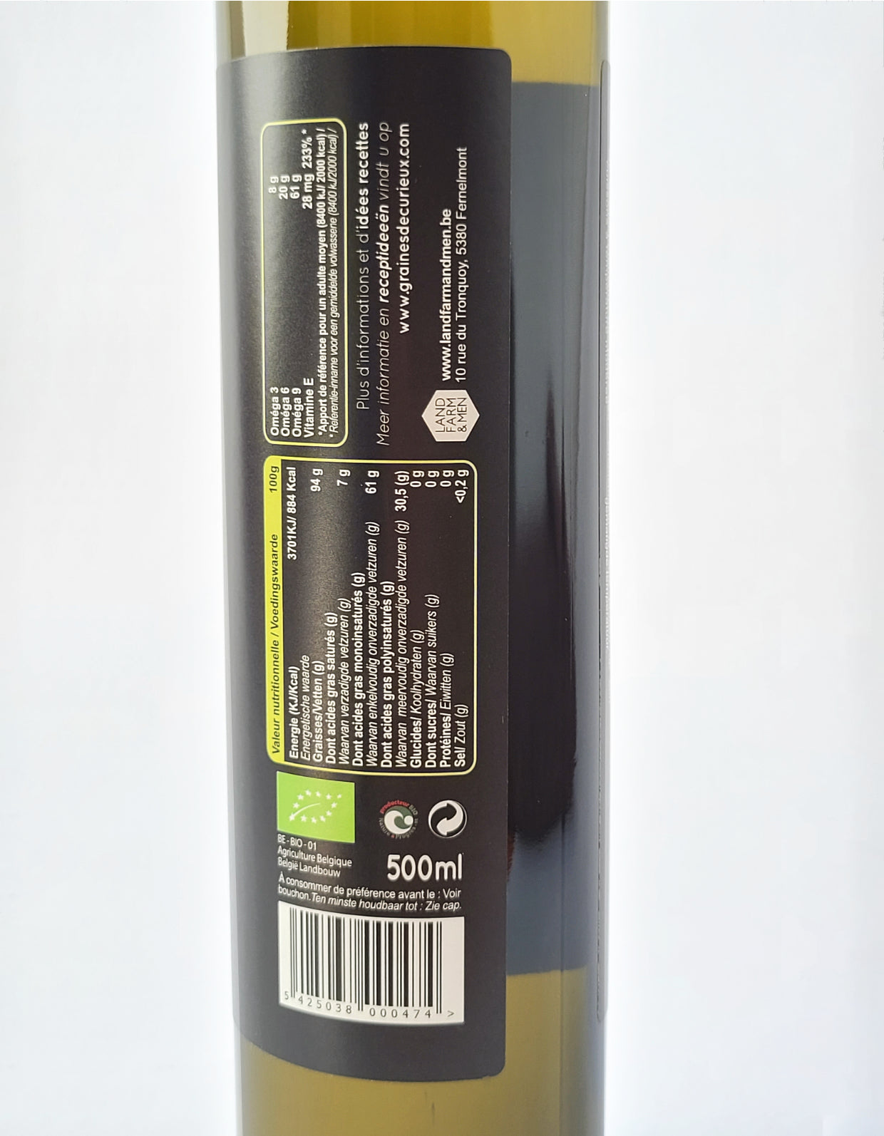 Pressée à froid, cette huile de colza bio cultivé en Belgique préserve toute sa richesse naturelle en oméga-3 et en vitamine E.