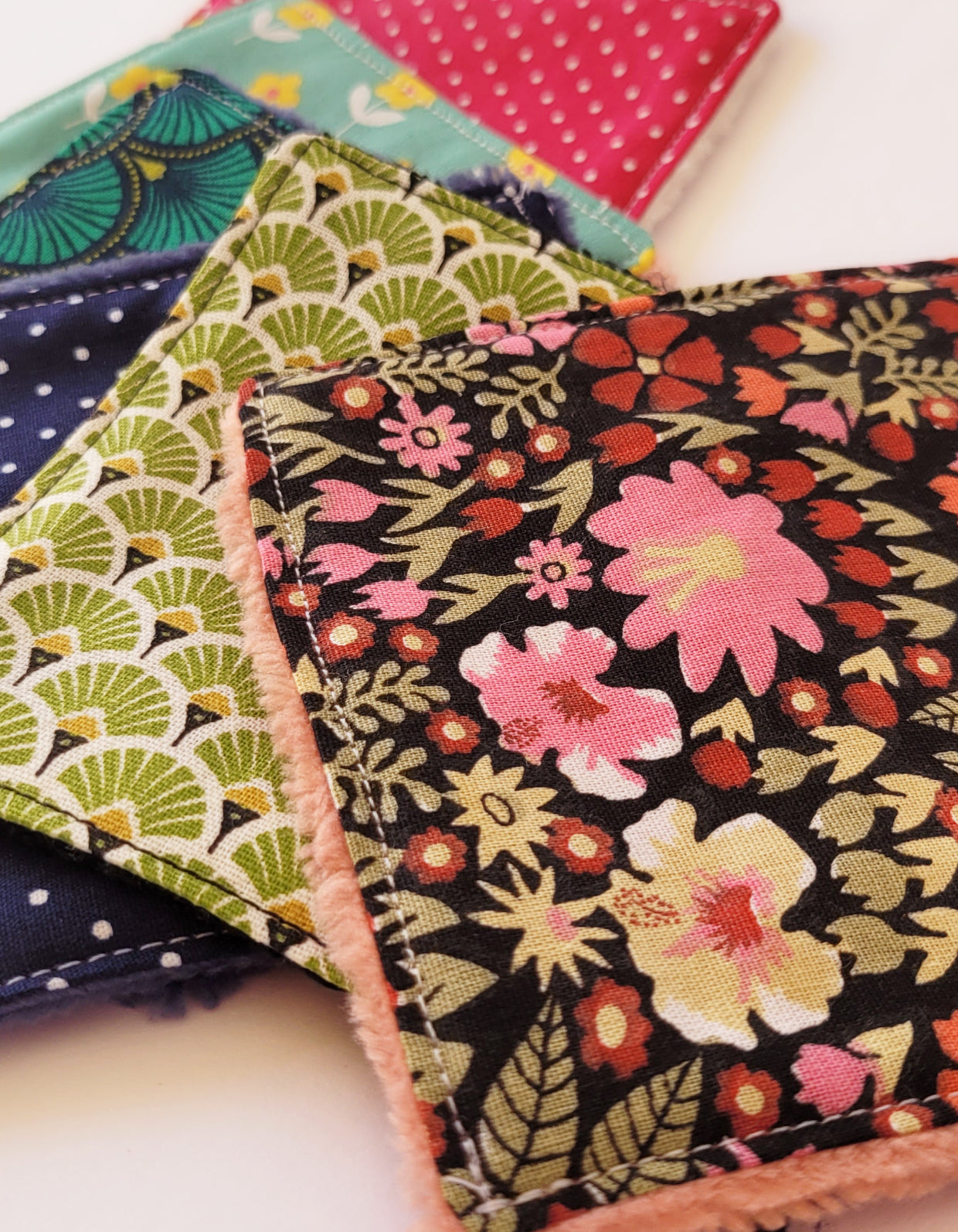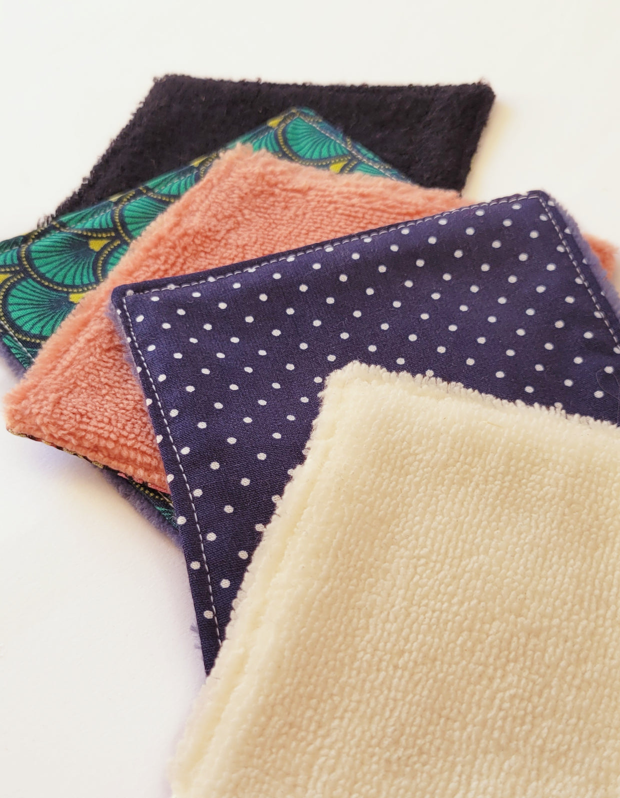 Chaque pièce allie un côté en coton coloré, aux motifs variés et joyeux, et un côté tout doux, parfait pour le nettoyage du visage ou le démaquillage en douceur.