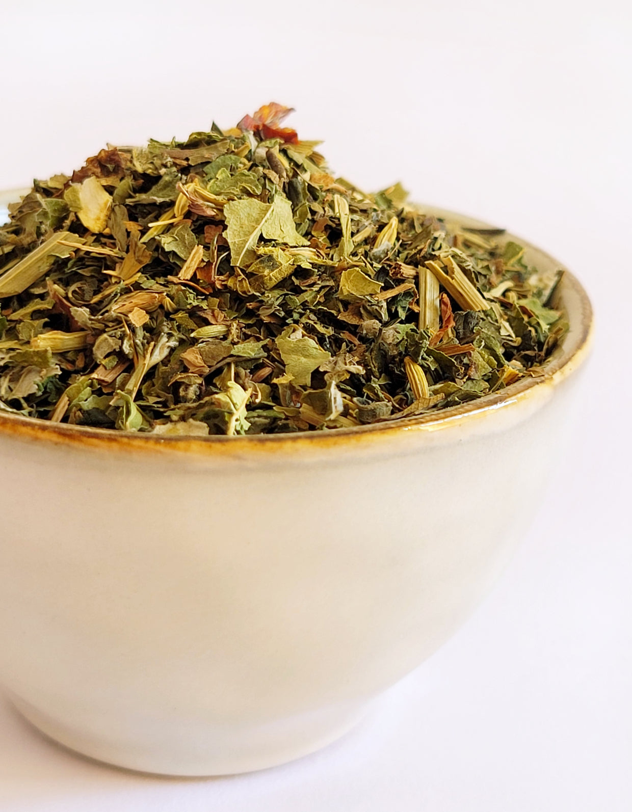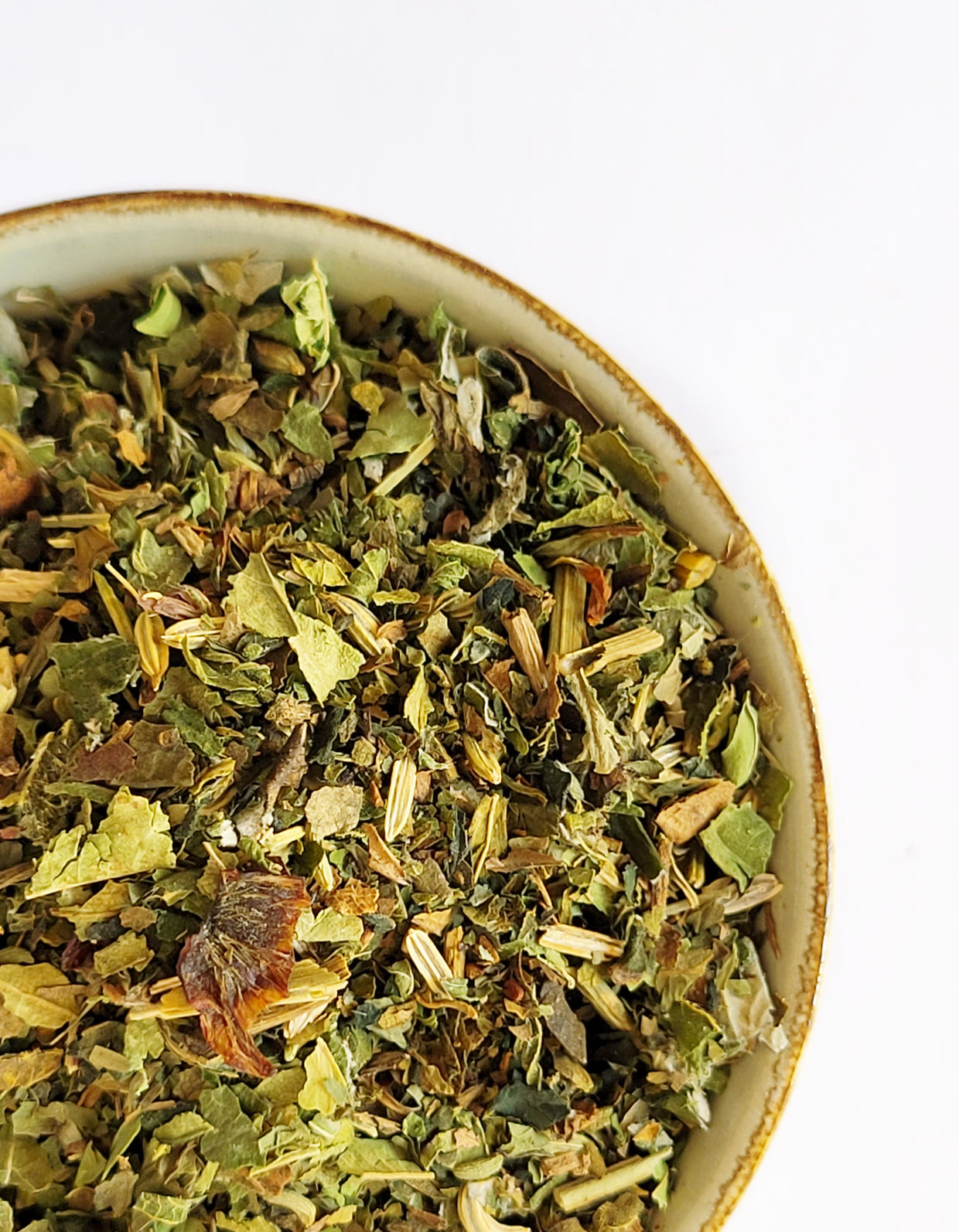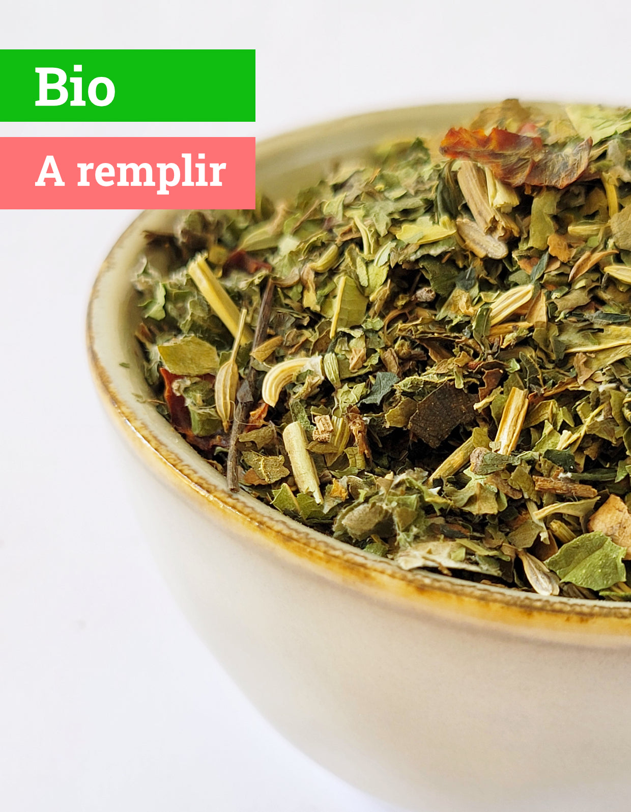 Feuilles de fraisier*, feuilles d'ortie*, fenouil*, menthe verte*, écorces d'églantier*, feuilles de framboisier*, luzerne*, verveine citronnée* *Issu de l'agriculture biologique