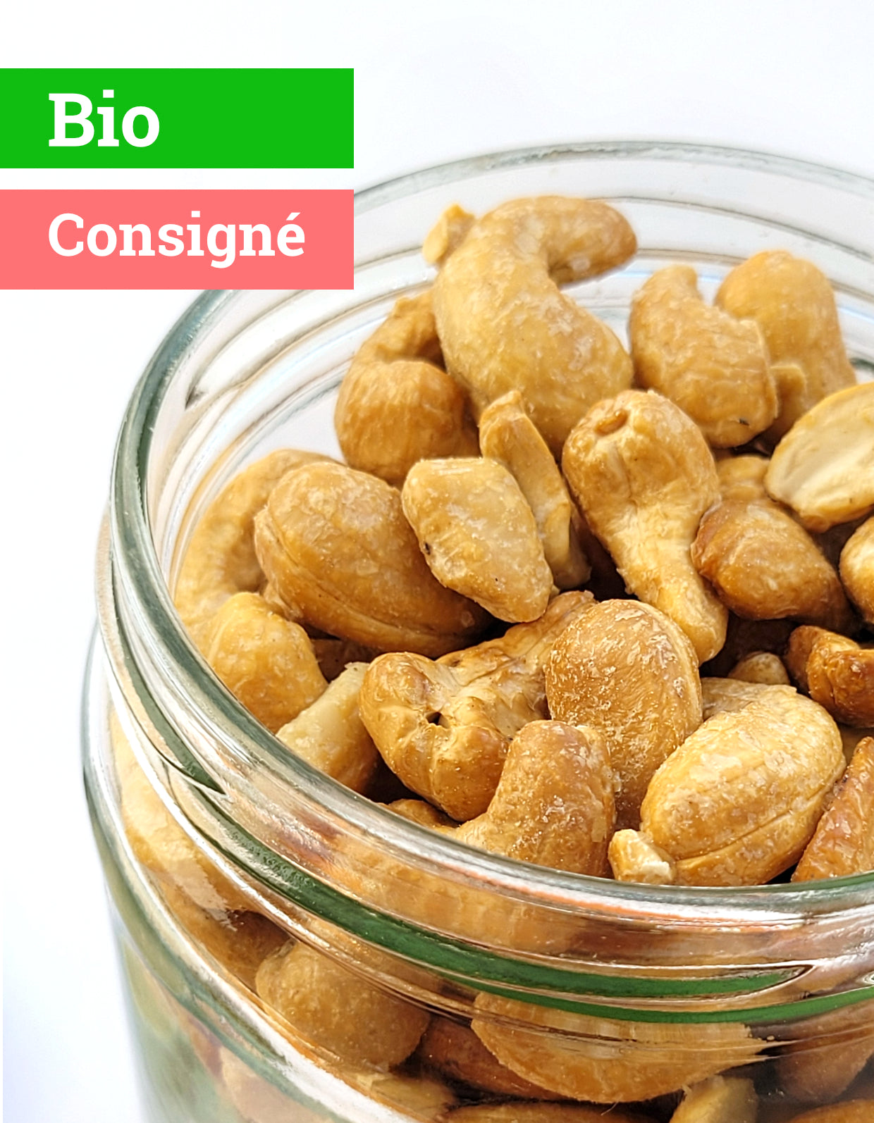 NOIX DE CAJOU* (97%), fleur de sel (1.5%), émulsifiant: gomme arabique, sel marin *Issu de l'agriculture biologique